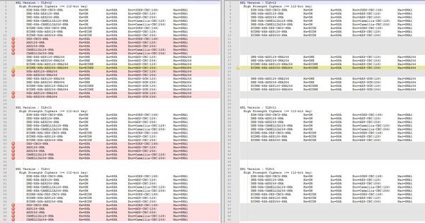 • well, currently it looks like that (check attachment) if add this line to cipher lists. On the left with your proposal on the left my current one. can i enable only this one: RSA-AES-256-CBC-SHA ??