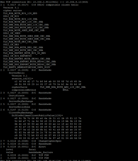 Aug 23, 2017From what I could see, Version 3.1 means, its on Tls 1.1. So your client intiated handshake on tls1.1 and server (F5) also negotiates with the same. But its then failing in the changecipherspec. Definitely it hasn't gone to server-side connection yet. Its still on the client-side connection and failing. I would check on the clientssl profile ciphers and try troubleshooting.