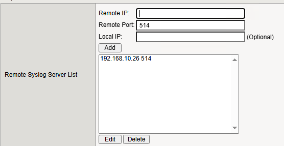 Adding Remote Syslog Server with GUI sends UDP packets.