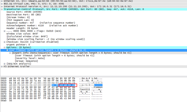 when SERVER_CONNECTED { scan $src_cli_addr {%d.%d.%d.%d} e b c d TCP::option set 28 [binary format cccc $e $b $c $d] all set tcp_option_content [binary format cccc $e $b $c $d] binary scan $tcp_option_content H* cli_addr_H }