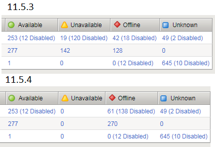 why that would change to full down after an upgrade? kinda odd, perhaps a change in behaviour where in the past down virtual with too many requests could actually show yellow.