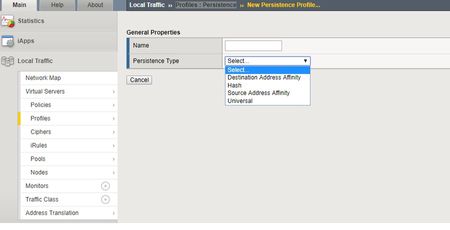 Unable to create new Profiles:Persistence with parent Cookies Persistence as parent Persistence method is missing/not showing in drop-down menu while creating the new profile.