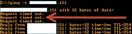 When pinging the VS IP address and the get "Request timed out." for a while