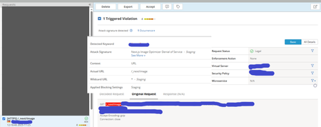 Hello Everyone I hope Youre well!!! Recently, I had this event logged by the WAF: a request categorized as “Attack signature detected” with a Violation Rating of 4. However, the WAF did NOT block...
