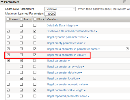 Hi, I can't trigger Ilegal meta character in value for parameter. Setup: Result: What am I missing in my testing setup? Illegal parameter value length works as expected f...