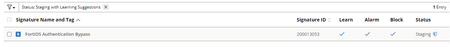 Hello, I'm looking for help to configure those things, if this is even possible: After the update signature process, we are waiting 7 days to monitor suggestions of staging signatures with hits on t...