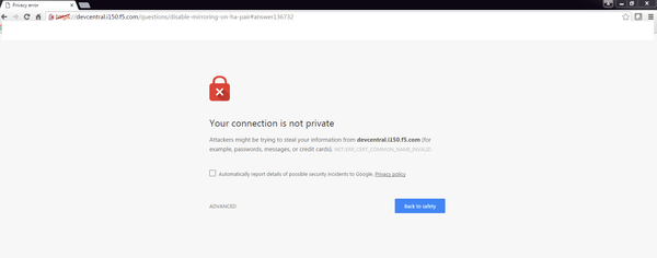It's intermittent, i am trying to access questions from the right hand corner of the home page of devcentral (Answers/Discussion section). It is sending me to devcentral.i50.f5.com and my browsers displays it has invalid cert.