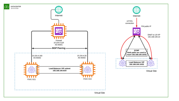 | Customer Edge Virtual Site | Two or more CE nodes advertising identical VIP prefixes via BGP |