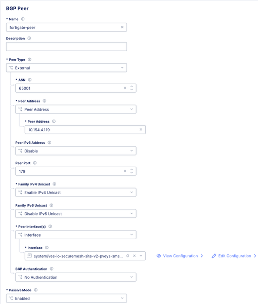 FortiGate firewalls are widely deployed as network security appliances and support robust BGP capabilities. This section provides the minimum configuration for establishing BGP peering with Customer Edge nodes and enabling ECMP load distribution.