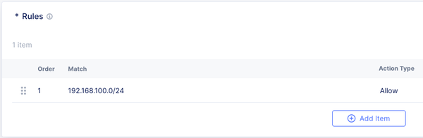 Here we are going to allow the /32 prefixes from our VIP subnet (192.168.100.0/24).