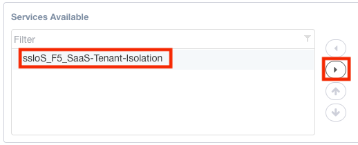 Select the F5_SaaS_Tenant-Isolation Service and click the arrow to move it to the right