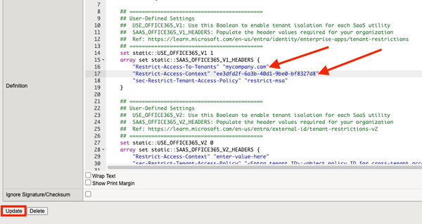 To enable the policy, set the value for “USE_OFFICE365_V1” from 0 to 1. Click Update.