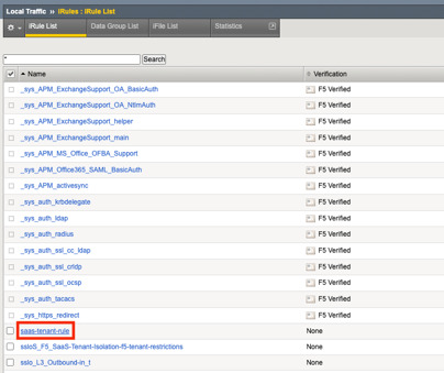 Click on the iRule named “saas-tenant-rule” (you may need to expand the iRule List)