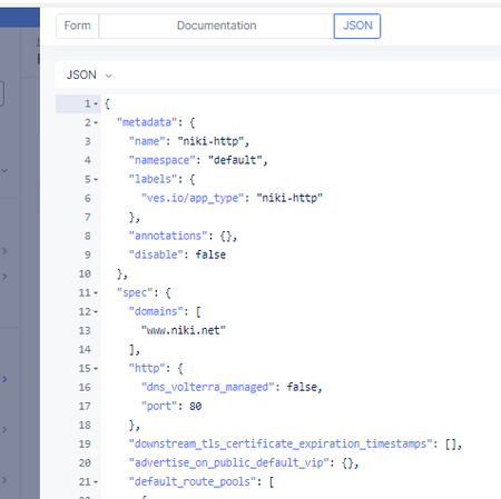 The F5 XC Distributed Cloud GUI in the background sends API requests with JSON body to the system and those requests can be easily reviewed.