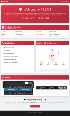 In my example, I use NGINX. The web application consists of four pages in four colours (red, blue, yellow and green) that are designed to demonstrate the load balancing functionality of the F5 Local Traffic Manager (LTM).