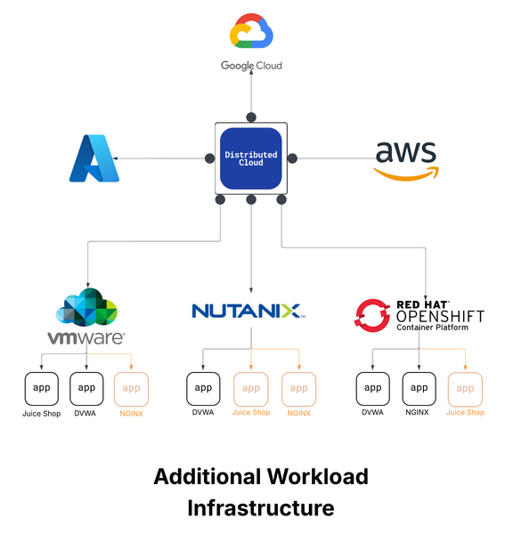 F5 Distributed Cloud supports continuous delivery and seamless security for additional workloads within existing infrastructure. We will introduce new workloads across all environments to validate and demonstrate this capability.