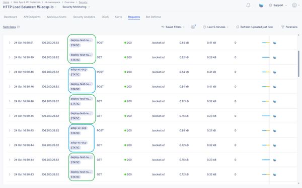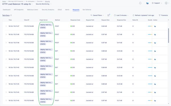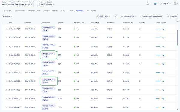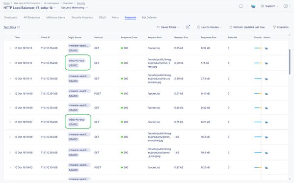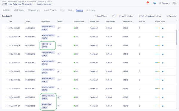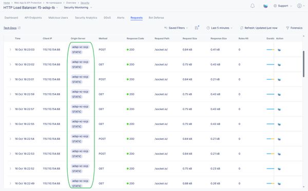 From the above screenshot, you can be able to see a small portion of traffic (highlighted in green) is reaching the application in the OCP platform by making associated configurations in F5 XC.