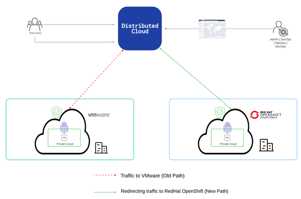 By further steering all the incoming requests to OCP makes the app in OCP responds to it and there by isolating the existing the platform, which is VMware. The complete migration process is covered in the document, Migrating application traffic from VMware to OCP | F5 XC Solutions.
