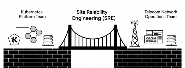 Figure 1: SRE bridges the Kubernetes platform team and telecom network operations team through shared SLIs and a unified observability stack.