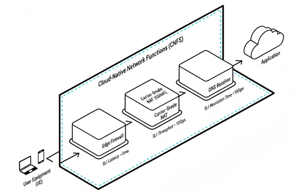 From an SRE perspective, this architecture enables composite SLOs that span multiple CNFs in a single traffic chain: