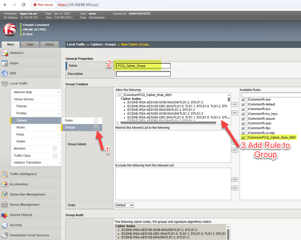 Next, we simply add our cipher rule to a cipher group, which our TLS profile can invoke.
