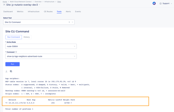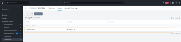 The CE then advertised the VIP route to its peer via BGP – the Nutanix Flow BGP Gateway: