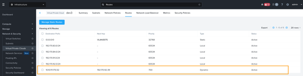 The Nutanix Flow BGP Gateway received the VIP route and installed it in the VPC routing table: