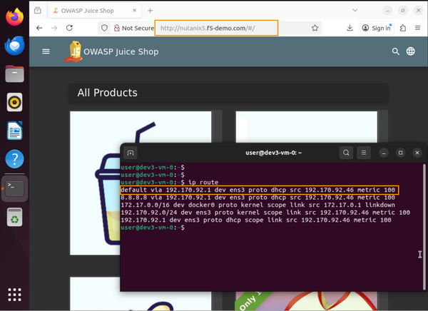 Finally, the VMs in dev3 can securely access nutanix5.f5-demo.com while continuing to use the VPC logical router as their default gateway:
