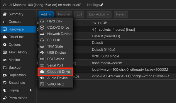 # qm set <vm_id> --cicustom "user=local:snippets/<cloud-init filename>" qm set 100 --cicustom "user=local:snippets/f5xc-cloud-init.yaml"