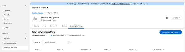 After installation: Installed Operators → F5 AI Security Operator → Create SecurityOperator