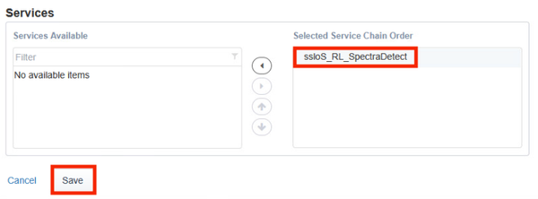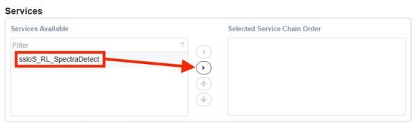 Select the RL_SpectraDetect Service and click the right arrow to move it to the right.