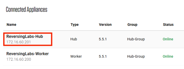 Enter the IP address of your ReversingLabs Hub, 172.16.60.201 in this example