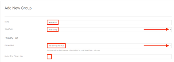 Set the Group Type to Hub Group by clicking the down arrow on the right.