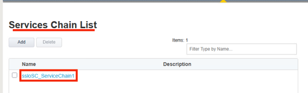 From the Services Chain List screen click on the name of your Service Chain, ServiceChain1 in this example
