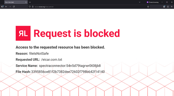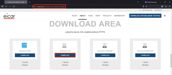 Next I will connect to the eicar.org web site which hosts a test virus. I’ll attempt to download the EICAR.TXT file.