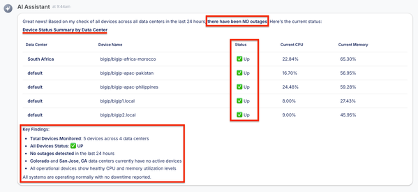 Have there been any outages in the past 24 hours for all devices in all data centers?