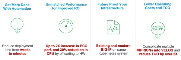 The F5 VELOS platform addresses the modern enterprise’s need for high-performance, scalable, and efficient application delivery and security solutions. By combining cutting-edge hardware capabilities with robust automation tools and flexible migration options, VELOS empowers organizations to seamlessly transition from legacy platforms while unlocking new levels of performance and operational agility. Whether driven by the need for increased throughput, advanced multi-tenancy, the VELOS platform stands as a future-ready solution for securing and optimizing application delivery in an increasingly complex IT landscape.