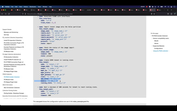 - Ansible Automation: Prebuilt Ansible modules for VELOS enable automated provisioning, configuration, and updates, reducing manual effort and minimizing errors.
