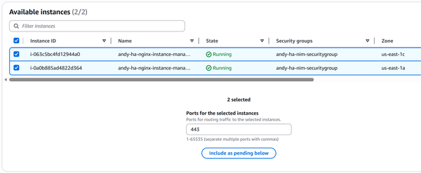 4. Include our two NIM instances as pending and save the target group