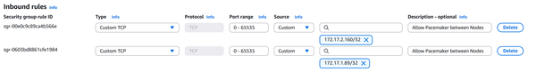 2. To allow Pacemaker to communicate between nodes, we need to add TCP communication between nodes to the Security Group for the NIM nodes.