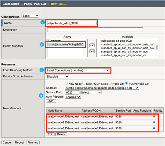 Add Pool Members. For each ObjectSale node, provide a name, address, and port (9020).