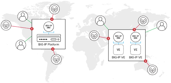 BIG-IP® DNS delivers an intelligent and scalable DNS infrastructure that gives mobile users faster access and service response. This makes it easy for service providers to optimize, monetize, and secure their DNS infrastructures. F5 DNS is a high-performance, carrier-grade DNS solution that caches and resolves LDNS. It is a highly scalable authoritative DNS solution that can handle business growth and sudden demand spikes.