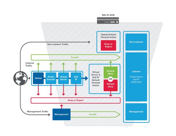 The AFM's key feature is its ability to act as a network based (stateful) firewall. To understand the various options available, we will describe the functions and key components within the AFM Network Firewall.