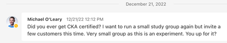Apr 11, 2023Lionel_Charpena I sent you a DM. Details also here for everyone else: https://community.f5.com/t5/devcentral-news/certified-kubernetes-administrator-study-group/ta-p/313427