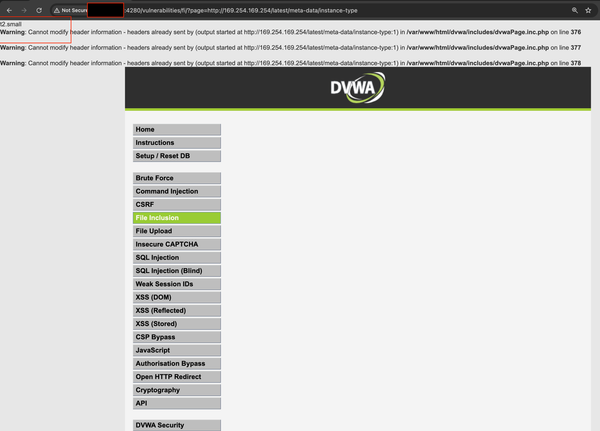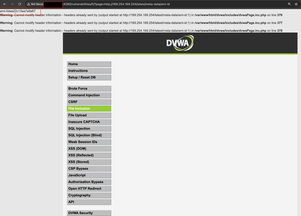 For this attack demonstration, we will look at how we can retrieve sensitive metadata from an instance running on AWS using the SSRF attack. To perform this attack we are going to use the DVWA demo application, which is deployed in the same instance as the docker container. This application is added as a pool member to BIG-IP and can be accessed via a virtual server. For more information, refer to how to add pool member.