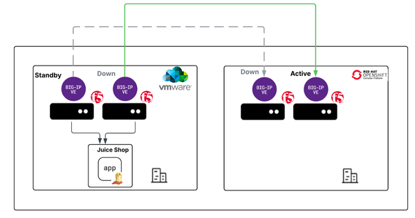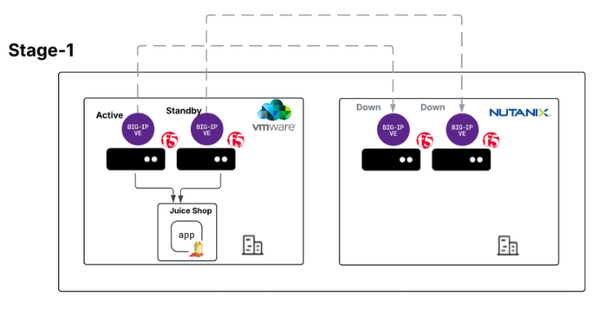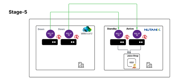 The following video demonstrates how using highly-available (HA) BIG-IP can facilitate migrating application workloads including the BIG-IP itself across platforms. This demo shows two BIG-IP HA pairs that started out in VMware with the standby devices copied to Nutanix and OpenShift Virtualization respectively. In the final step of the video a failover is initiated and the devices running in Nutanix and OpenShift take over, resulting in an interruption-free user experience. This video highlights only stages 2 and 3 in both scenarios detailed below.