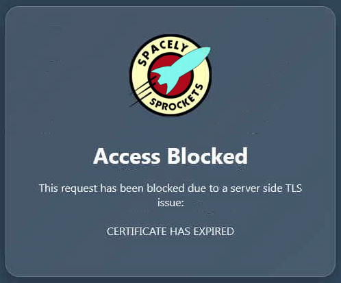 call GEN_BLOCK_PAGE "This request has been blocked due to a server side TLS issue: <br /></br>[string toupper $ctx(tlsverify)]"