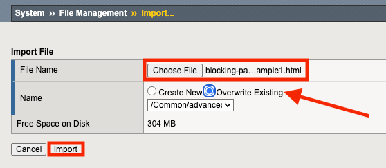 To Customize the Blocking Page, go to System > File Management > iFile List > Import