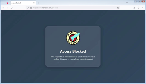 An attempt to view the Products page on www.marlboro.com results in the following: