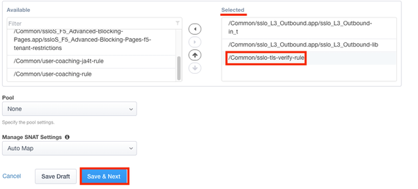 In the Resources section near the bottom, move the “ssl-tls-verify-rule” from Available to Selected.